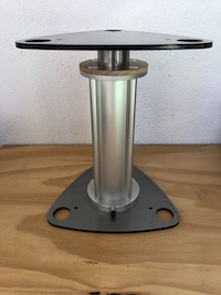 Proprio per questa particolarità il supporto può essere utilizzato per l’appoggio di altri elementi hi-fi quali elettroniche, finali e giradischi. Il posizionamento è preciso perché garantito da piedini regolabili con appoggio sferico oppure conico (a richiesta). Poiché il supporto pneumatico è completamente smontabile (piastra superiore, cilindro, piastra inferiore), se necessario, è possibile sostituire le piastre di appoggio realizzandole in forme differenti per adattarsi alle diverse esigenze. Su richiesta è possibile realizzare la parte centrale (cilindro) anche con misure differenti.